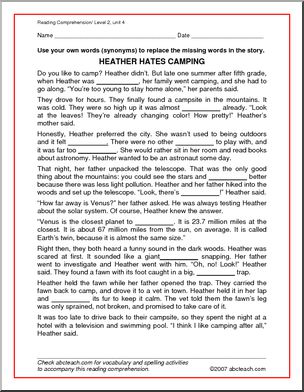 Use this ‘Spelling Level 2, unit 4 – reading work (elementary)’ printable worksheet in the classroom or at home. Your students will love this ‘Spelling Level 2, unit 4 – reading work (elementary)’. “Heather Hates Camping”: reading comprehension and cloze exercise to go with spelling level 2, unit 4 vocabulary: eleven, twenty, strange, ugly, quiet, […]