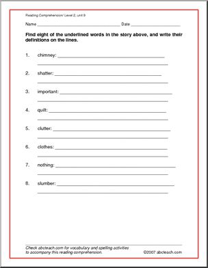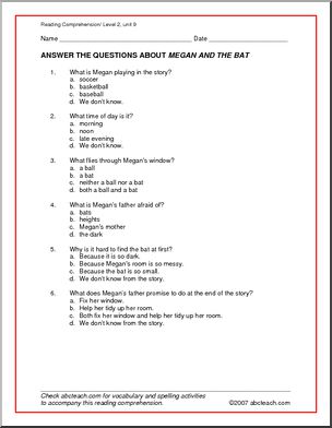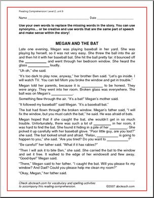 Use this ‘Spelling Level 2, unit 9 – reading work (elementary)’ printable worksheet in the classroom or at home. Your students will love this ‘Spelling Level 2, unit 9 – reading work (elementary)’. “Megan and the Bat” reading comprehension and cloze exercise to go with spelling level 2, unit 9 vocabulary: quilt, shatter, clutter, slumber, […]