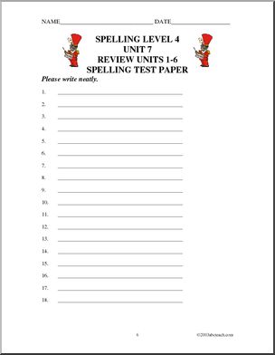 Spelling Level 4, unit 7 (review units 1-6) (high school-adult)