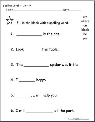 Use this ‘Spelling Level K, unit 19’ printable worksheet in the classroom or at home. Your students will love this ‘Spelling Level K, unit 19’. Worksheets to help learn these spelling words: am, where, on, black, be, yes. Cloze exercise, word search, missing letters and more!