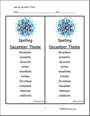Content / Language Arts / Spelling / Spelling Units by Theme / Months/Seasons