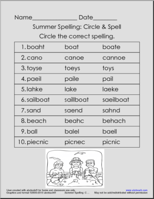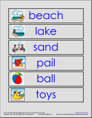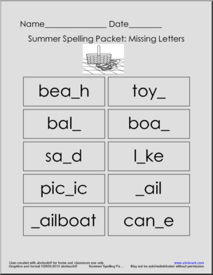 Spelling Packet: Summer Beach Theme (grades 1-2)