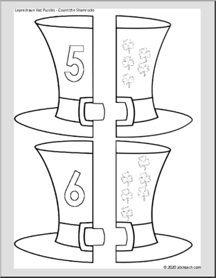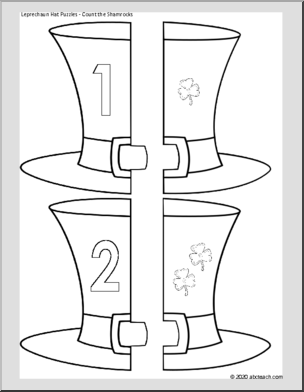Count the shamrocks and match the numbers (1-12) on these cute hats. These black/white outline puzzles are a great St. Patrick’s Day themed activity for students to color, cut, match, and paste.