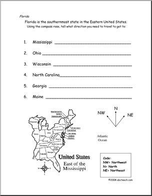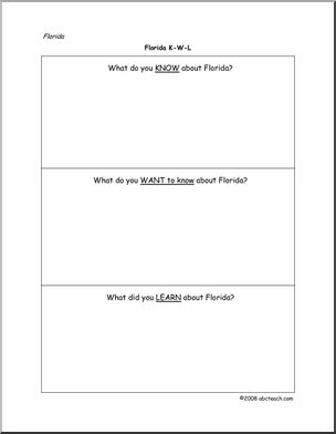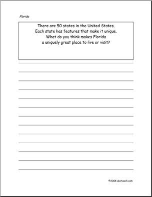 KWL, writing prompt, word search, state symbols, map reading, neighboring states, a flag to color, plus Florida-specific worksheets (panhandle).