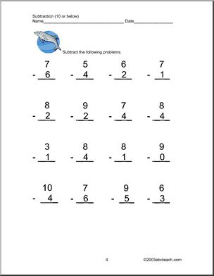 This Subtracting from 10 or less Clip Art is perfect to practice subtraction skills. Your elementary grade students will love this Subtracting from 10 or less Clip Art. Printable subtraction worksheet, numbers 10 or less.