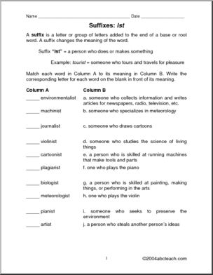 Use this ‘Rules and Practice: Suffixes – IST’ printable worksheet in the classroom or at home. Your students will love this ‘Rules and Practice: Suffixes – IST’. Master the suffix IST with this set of five worksheets.