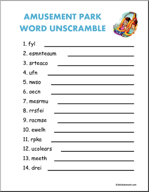 This fun packet is perfect for children interested in amusement parks. Activities include designing a theme park, drawing, writing, word unscramble, and a word search.