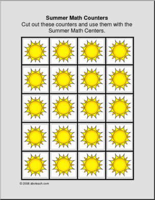 This Summer math counters Learning Center is perfect to practice counting skills. Your elementary grade students will love this Summer math counters Learning Center. Cut out these counters and use them with the Summer Math Centers.