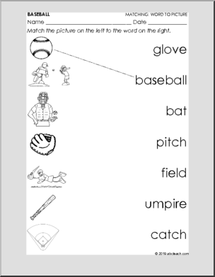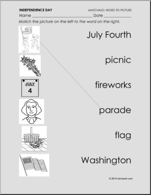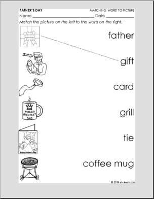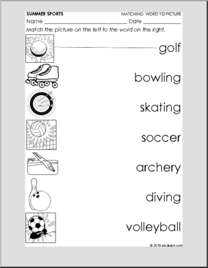 Match the summer-themed pictures to the words in this set that includes Summer, Summer Treats, Beach, Camping, Summer Sports, Baseball, Father’s Day, and Independence Day.