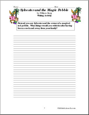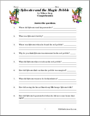 Use this ‘Book: Sylvester and the Magic Pebble (primary/elem)’ printable worksheet in the classroom or at home. Your students will love this ‘Book: Sylvester and the Magic Pebble (primary/elem)’. Enhances William Steig’s 1970 Caldecott winner.