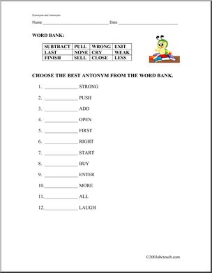 Synonyms and Antonyms Worksheets