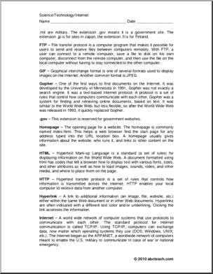 Technology: Internet Vocabulary (upper elem/middle/high school)