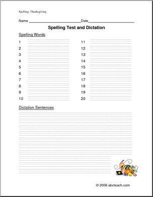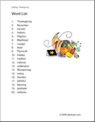 Thanksgiving (upper elem) Spelling
