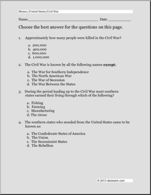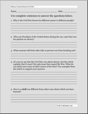 The American Civil War Packet: Reading Comprehensions (upper el, middle, high school)