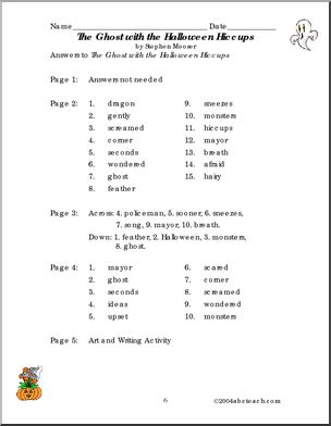 Use this ‘Book: The Ghost with the Halloween Hiccups (primary/elem)’ printable worksheet in the classroom or at home. Your students will love this ‘Book: The Ghost with the Halloween Hiccups (primary/elem)’. Reinforces vocabulary from Stephen Mooser’s story of a hiccuping ghost.