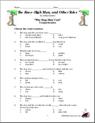 Use this ‘Book: The Knee-High Man and Other Tales (primary/elem)’ printable worksheet in the classroom or at home. Your students will love this ‘Book: The Knee-High Man and Other Tales (primary/elem)’. This book unit serves as a comprehension and vocabulary-enhancing backdrop to Julius Lester’s excellent re-telling of these pourquoi tales.