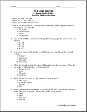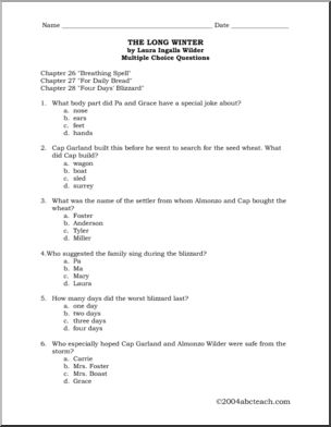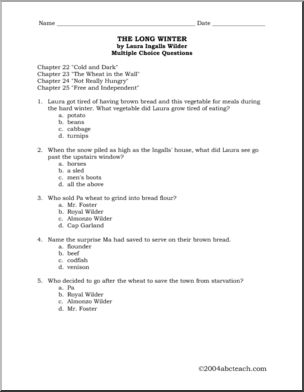 Use this ‘Book: The Long Winter (elem/upper elem)’ printable worksheet in the classroom or at home. Your students will love this ‘Book: The Long Winter (elem/upper elem)’. Chapter-by-chapter comprehension questions and essay or discussion prompts to go with the sixth book in Laura Ingalls Wilder’s “Little House” series.