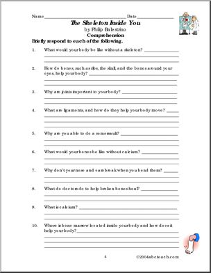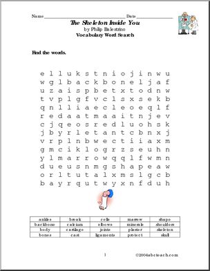 Use this ‘Book: The Skeleton Inside You (primary/elem)’ printable worksheet in the classroom or at home. Your students will love this ‘Book: The Skeleton Inside You (primary/elem)’. Vocabulary and comprehension exercises enhance the Philip Balenstrino book.