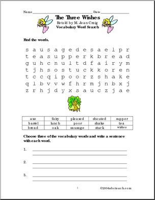 Use this ‘Book: The Three Wishes (elementary)’ printable worksheet in the classroom or at home. Your students will love this ‘Book: The Three Wishes (elementary)’. A great accompaniment to the Grimm Brothers’ classic, as retold by M. Jean Craig. Enhances vocabulary and comprehension.