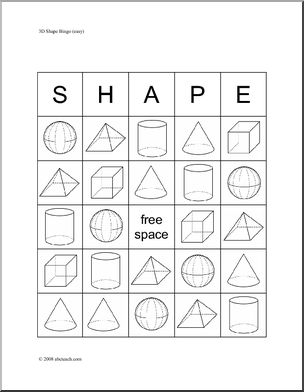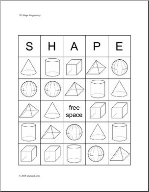 This Three-Dimensional Shapes Bingo Cards is perfect to practice geometry skills. Your elementary grade students will love this Three-Dimensional Shapes Bingo Cards. Set of twenty bingo cards for three-dimensional shapes, from CONE to SPHERE.