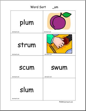 Use this ‘Word Sort Center: -um Words’ printable worksheet in the classroom or at home. Your students will love this ‘Word Sort Center: -um Words’. Cards with words and matching pictures for word ending in -UM; these can be used in matching games and word sort center activities.