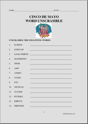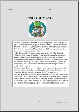 This great unit features a fact-filled reading comprehension, a crossword puzzle, a word search, a line graph, a pie graph, Cinco de Mayo-themed word problems, and more!