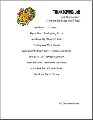 This unit contains word strips, word unscrambles, three mini-booklet prompts, and more… all related to Thanksgiving.