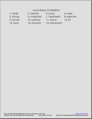 Unscramble the Words: Healthy Heart: Jump Rope (elem/upper)