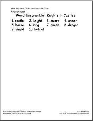 Unscramble the Words: Knights ‘n’ Castles (primary)