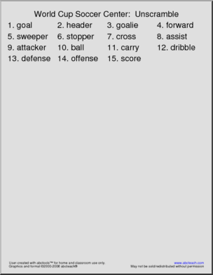 Unscramble the Words: World Cup Soccer