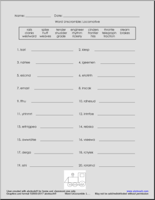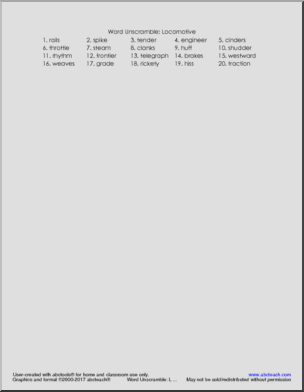 Vocabulary Puzzles: Locomotive (elem)