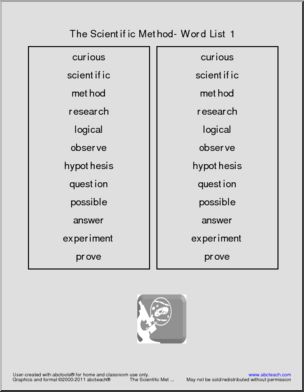 A set of vocabulary building tools and activities of words related to the Scientific Method. Includes word list, spelling practice or definition worksheet, word search in the shape of a microscope and a word unscramble.