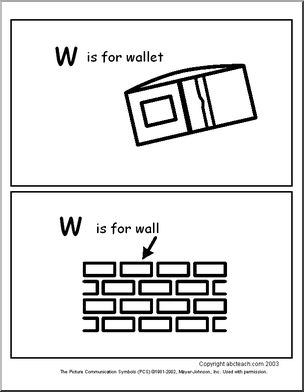 Use this ‘ABC Booklet: W Words’ printable worksheet in the classroom or at home. Your students will love this ‘ABC Booklet: W Words’. “w is for wet.” Make booklets or large flashcards with these simple early reading pages (two picture-supported words to a page; 6 pages).