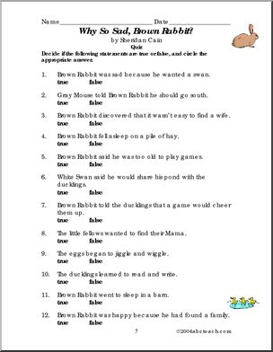 Use this ‘Book: Why So Sad, Brown Rabbit? (primary)’ printable worksheet in the classroom or at home. Your students will love this ‘Book: Why So Sad, Brown Rabbit? (primary)’. Enhances comprehension and vocabulary skills for the book by Sheridan Cain.