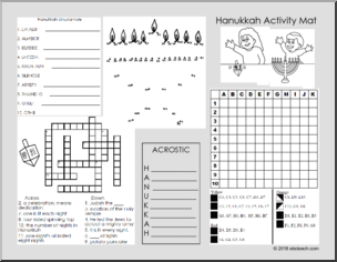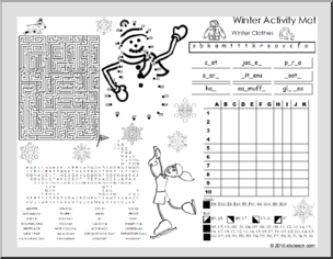 This fun Winter-themed activity mat set includes mats for Winter, Hannukah, Christmas, Kwanzaa, New Year’s Day, Groundhog Day, and Presidents Day. Included activities: maze, word search, crossword, acrostic, dot-to-dot, missing letters, unscramble, math grid, decoding, matching, writing, and coloring.