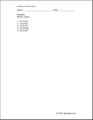 Winter Addition (elem) Word Problems