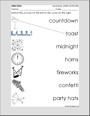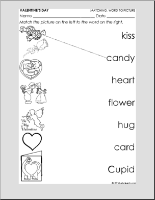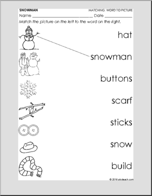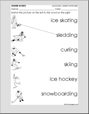 Match the winter-themed pictures to the words in this set that includes Winter, Snowman, Winter Clothes, Winter Sports, New Year, Valentine’s Day, and Presidents Day.