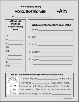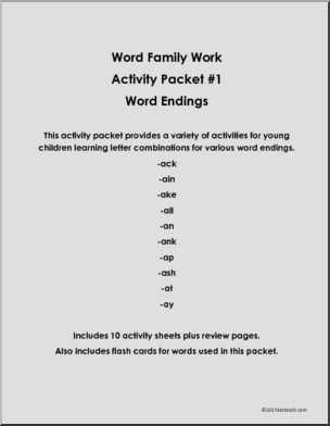 Use this ‘Word Families: Word Endings – Vowel A’ printable worksheet in the classroom or at home. Your students will love this ‘Word Families: Word Endings – Vowel A’. This activity packet #1 provides activities for children learning letter combinations for 10 word endings using the vowel ‘a’.