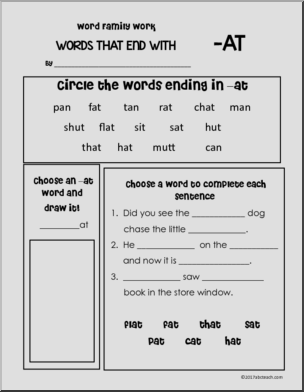 Word Endings – Vowel A Word Families