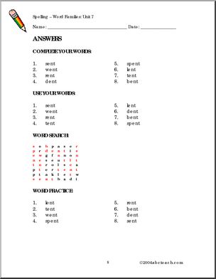 Word Families 1 — unit 7 “-ent” Spelling