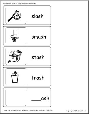 Use this ‘Flashcards: Word Family – ash words’ printable worksheet in the classroom or at home. Your students will love this ‘Flashcards: Word Family – ash words’. Pictures of -ash words with words next to each picture. Fold the page over the words to practice.