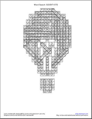 [member-created using abctools] Find the inventors and scientists, from BELL to WHITNEY, in this lightbulb-shaped word search.