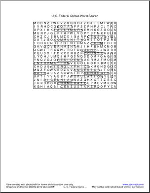 Medium difficulty word search based on vocabulary words in the abcteach upper elem/middle reading comp “Your Representative Government-U.S. Federal Census.”
