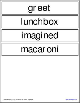 [member-created with abctools] From “alphabet” to “wiggled”. These vocabulary building word strips are great for word walls. Enhances Nancy Poydar’s book about back-to-school jitters.