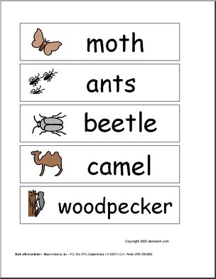 From “beetle” to “red velvet mites”. These vocabulary building word strips with pictures are great for word walls, sentence strips, spelling and vocabulary practice.