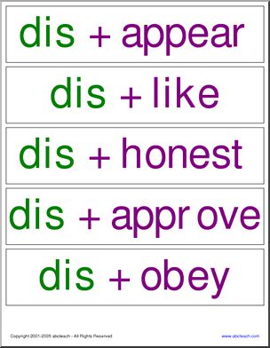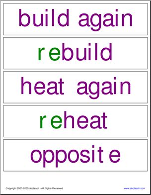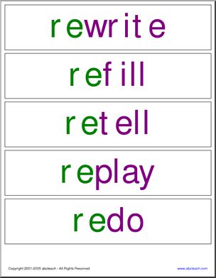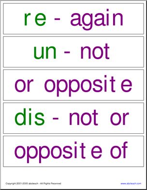 Word Wall: Grammar – Prefixes – re, un, dis