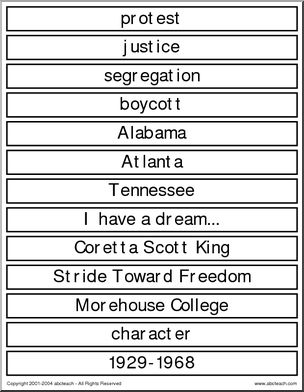 Word Wall: Martin Luther King, Jr. (upper/middle)