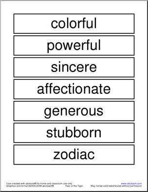[member-created with abctools] From “affectionate” to “zodiac”. These vocabulary building word strips are great for word walls.