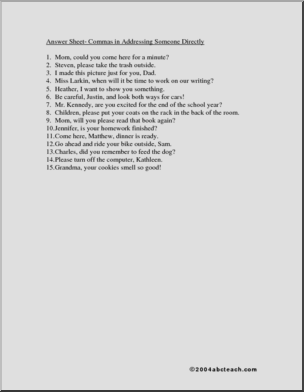 Worksheet: Commas – with names (2)