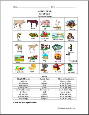 Practice conversations, listening and context skills, countable and uncountable nouns and more, all with a “agriculture” theme.